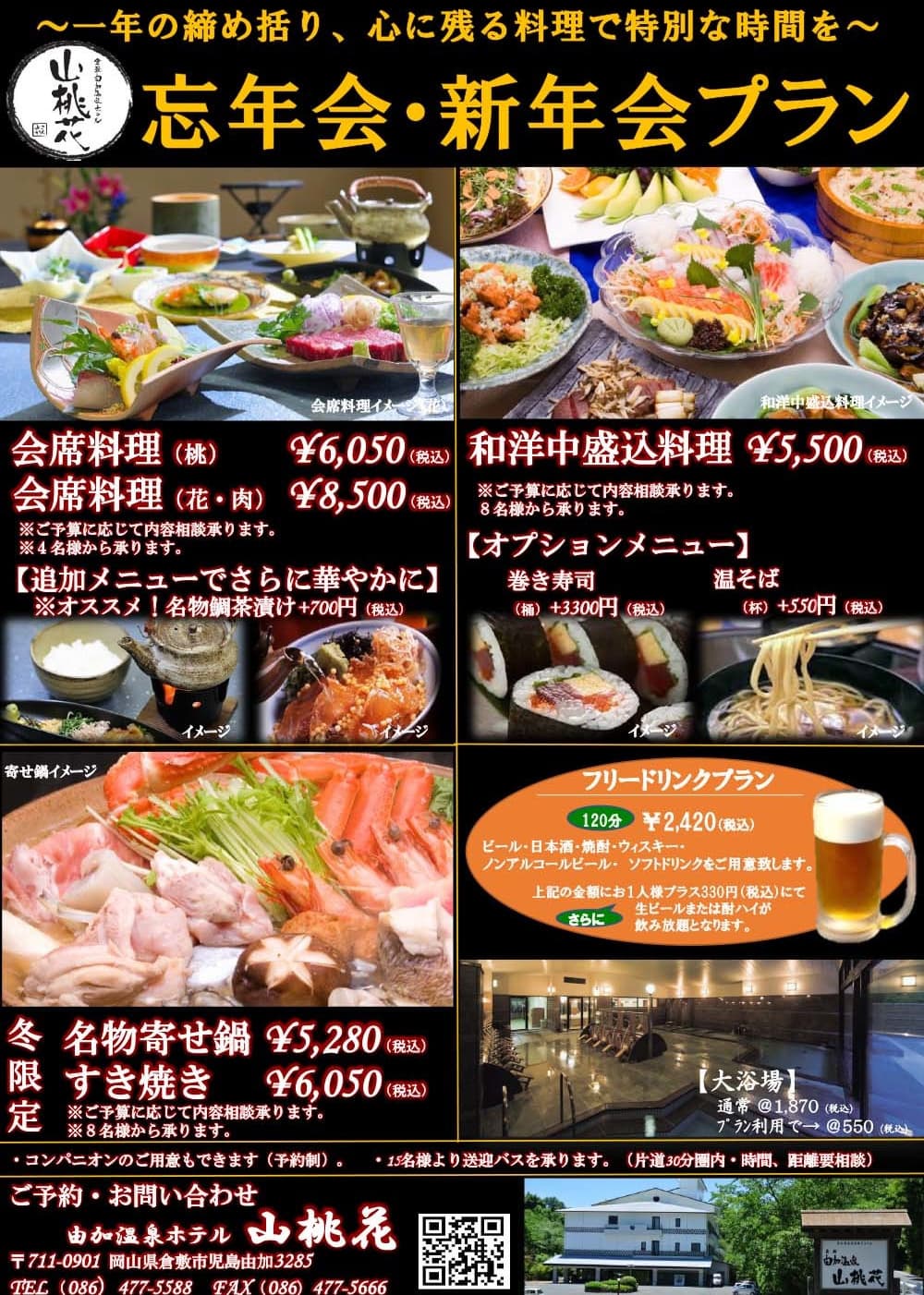 宴会プランご利用の方はご入浴料500円(税別)でご利用になれます。
