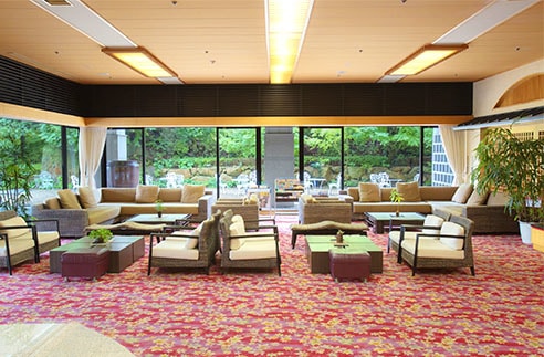 広く開放的なロビー。ゆったりとしたソファーでおくつろぎください。