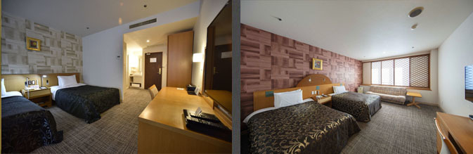 客室設備 | セミダブルサイズツインベットルーム、バス・トイレ付きです。 |