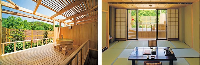 客室設備 | 桧風呂、屋上庭園、 茶室、露天風呂 |